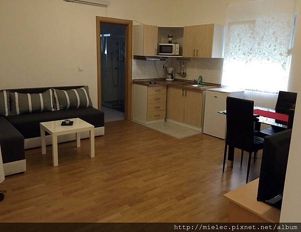 今晚租的是間公寓,設備齊全,付歐元或庫納都可