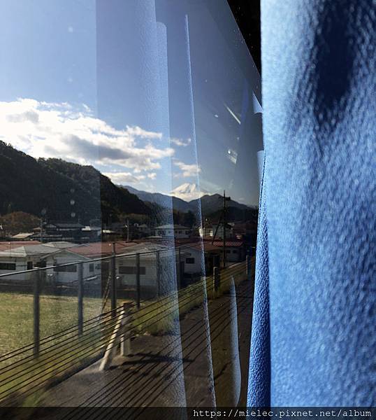買個御飯團在巴士上吃,繼續拉車行程,途中導遊叫我們看前方的富士山,由於小編是坐最後一排,很勉牆拍了一張
