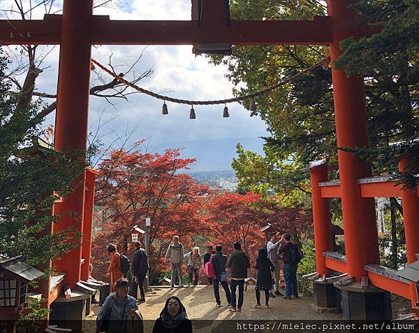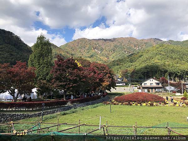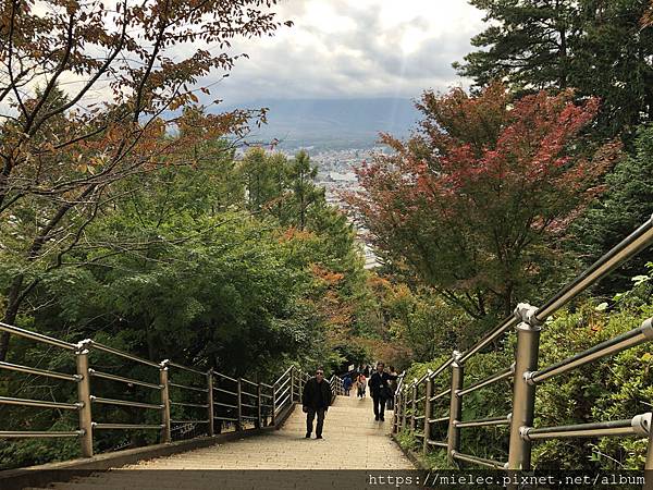 抵達停車場後,導遊會提醒集合時間,之後便帶領我們到楓葉迴廊,然後便自由活動,前往楓葉迴廊途中,還好有拍到富士山,因沒多久後富士山就被雲遮住了