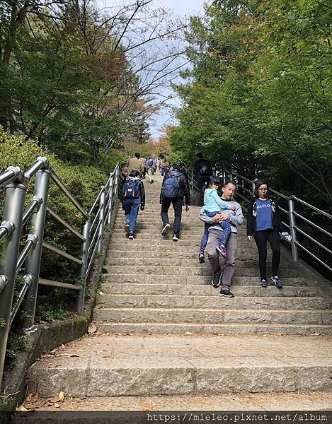 其實小編有嚴重的懼高症,且已知今日無緣見到富士山,本想放棄,但看到階梯有攔杆,便硬著頭皮死命抓著欄杆爬上去