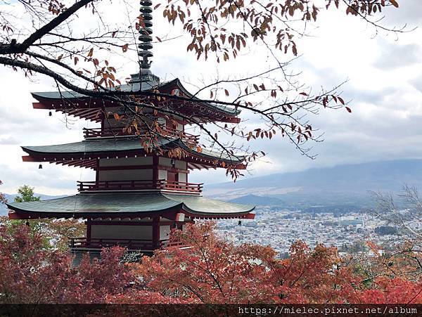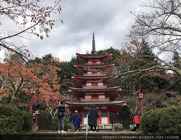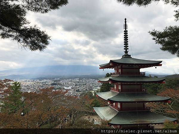 吃的好撐!接著繼續拉車到Kate最期待的"新倉山淺間公園",最大亮點是"忠靈塔"跟富士山合照的美景