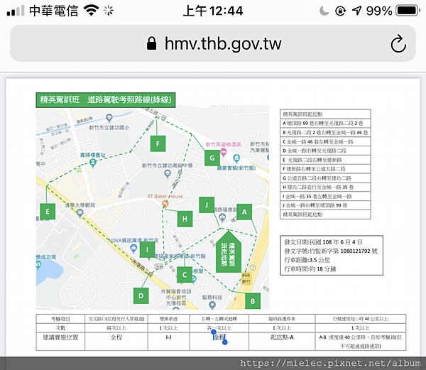 第一堂跑道駕途中,雖然當天被教練唸到心情低落,不過小編盡量去記住教練所叮嚀的事項及指出我需修正的地方,回家後小編上監理站下載駕訓班道駕的路線來看,並列印出來做筆記,把每次忘記打方向燈或起步查看等注意事項記錄下來