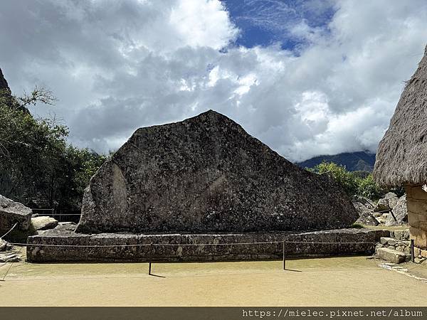 聖石 (Roca Sagrada), 形狀像山的大型 石碑與背景山脈吻合