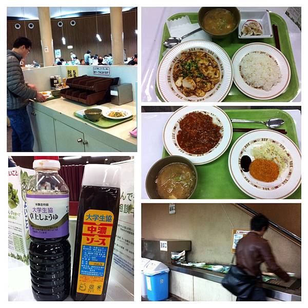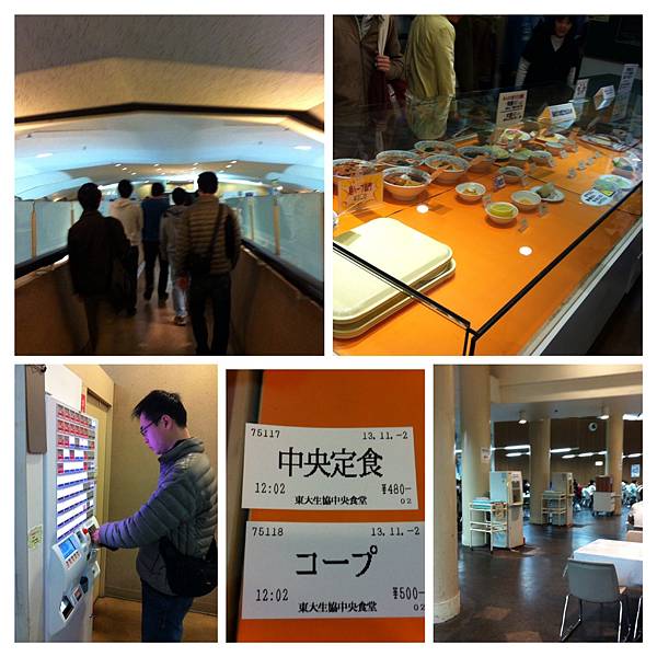 安田講堂前方有一通往地下之樓梯 就是今天午餐用餐地方--中央食堂,先看食物模型提供的餐點,再去販賣機 購買食卷,接著就可以去櫃台取餐了,對了相對於校園的冷清,這裡可熱鬧了,有許多像我們這樣的校外人士用餐,可能因為便宜又大碗,CP值高。